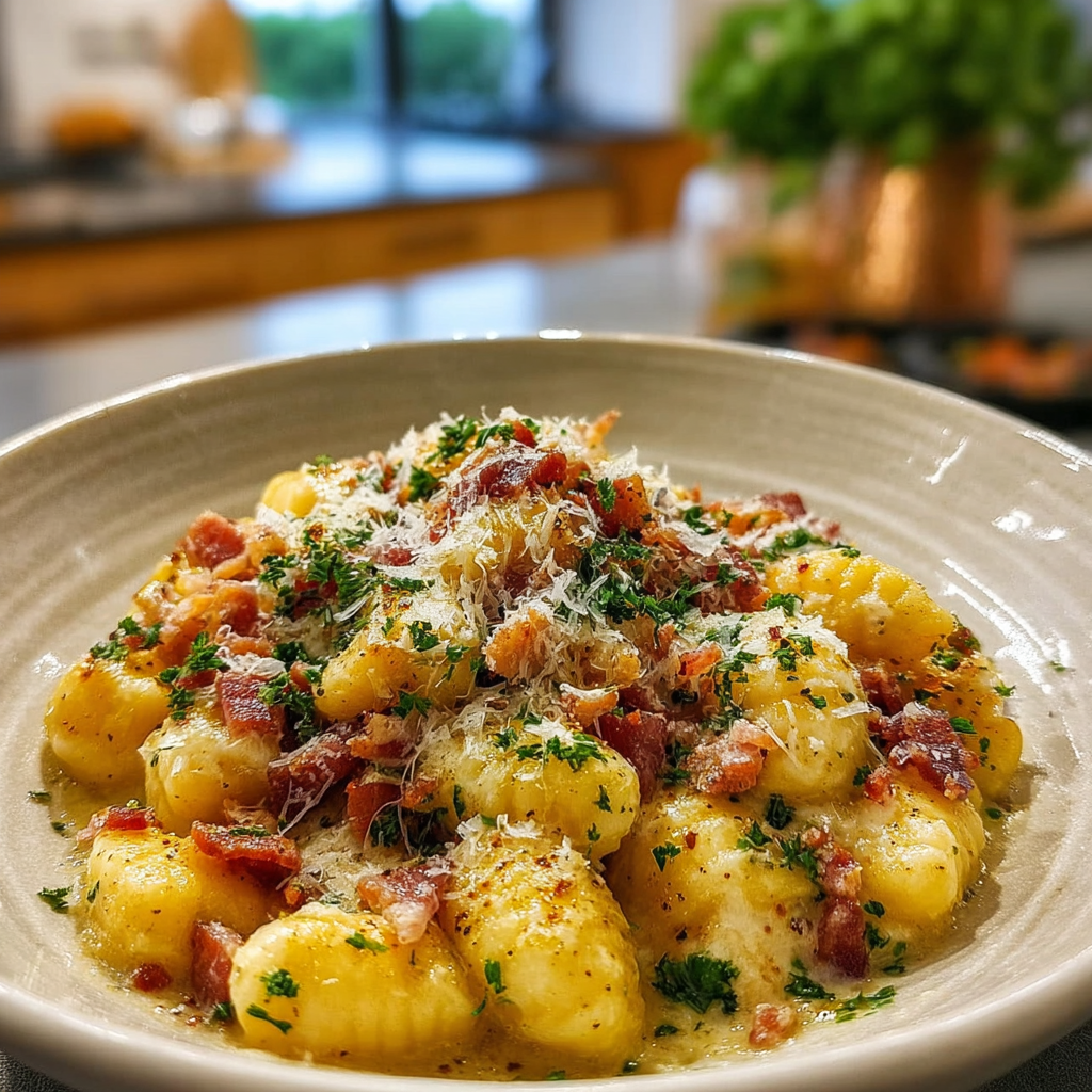 Creamy Gnocchi Carbonara with Bacon & Parmesan Delight