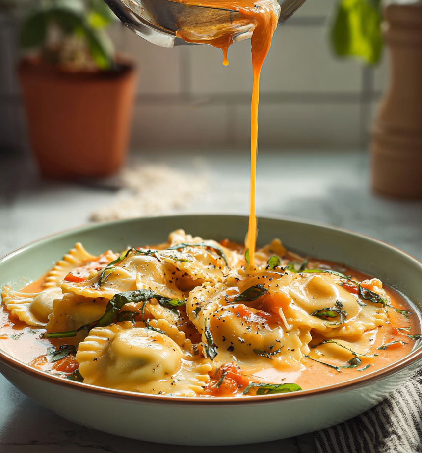 Indulge in a comforting bowl of Creamy Tuscan Ravioli Soup, where velvety heavy cream meets tender ravioli, fresh spinach, and tangy sun-dried tomatoes. This delightful dish captures the essence of Italian cuisine, making it perfect for chilly evenings or family gatherings. With rich flavors and a warm aroma, each spoonful transports you to Tuscany, creating cherished moments around the table.