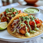 Crispy Baja Fish Tacos with Avocado Crema