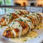 Next, in the same skillet, melt butter and add minced garlic. Sauté the garlic until fragrant, then stir in heavy cream and grated Parmesan cheese. Mix well until the cheese melts and the sauce becomes creamy. Return the seared chicken to the skillet, ensuring each piece is covered with the rich sauce.