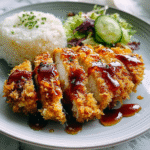 - Serve with katsu sauce drizzled on top.