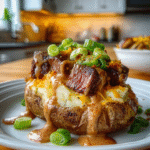 This recipe has a special place in my heart, as I remember preparing it for family gatherings where everyone gathered around to enjoy good food and great conversations. The aroma of baked potatoes mingling with sizzling steak creates an inviting atmosphere that makes any occasion feel special. Whether you’re hosting a cozy dinner party or looking for comfort food after a long day, this Loaded Baked Potato with Steak promises to deliver incredible flavors that will keep everyone coming back for more.