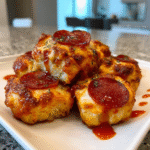 Low-Carb Pepperoni Pizza Bites are bite-sized snacks made from a low-carb dough base topped with pepperoni and cheese. They provide all the flavors of pizza without the high carbohydrate count typically found in traditional crusts. These bites are perfect for anyone following a low-carb or ketogenic diet while still enjoying their favorite pizza flavors.