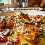 Indulge in the warmth of Italy with this Irresistible One-Pan Tuscan Chicken Recipe. Featuring succulent chicken breasts bathed in a creamy sauce enriched with sun-dried tomatoes and fresh spinach, this dish is not only a feast for the taste buds but also a breeze to prepare and clean up. Perfect for family dinners or cozy nights, each bite is an explosion of flavor that will have everyone asking for seconds!