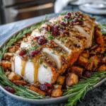 Imagine the scents wafting through your kitchen as the turkey roasts to golden perfection, mingling with earthy thyme and fresh rosemary. The vibrant cranberries add a tangy sweetness, beautifully contrasting with the richness of the roasted turkey. This recipe is not only visually stunning but also incredibly flavorful, making it an ideal choice for special celebrations, holiday feasts, or simply a comforting Sunday dinner at home. Get ready to impress your guests with this easy yet impressive dish!