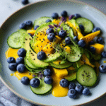 This refreshing Mango Cucumber Salad featuring blueberries and creamy avocado is a delightful summer dish bursting with vibrant flavors. With juicy mango, crisp cucumber, sweet blueberries, and rich avocado, this salad offers a perfect balance of textures and tastes. It’s easy to prepare and ideal for barbecues, picnics, or as a healthy snack.