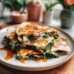 Baked Spinach Mushroom Quesadillas are a delicious and wholesome twist on a classic favorite. These golden, crispy tortillas are filled with savory sautéed mushrooms, fresh spinach, and gooey cheese, creating an irresistible flavor combination. Perfect for a cozy family dinner or a quick snack, this recipe is simple to prepare and promises satisfaction in every bite.