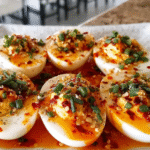 Spicy Chili Garlic Deviled Eggs are a tantalizing twist on the classic appetizer, perfect for any gathering or cozy night in. With creamy egg yolks blended with zesty chili paste and aromatic garlic, these deviled eggs deliver a delicious kick that will keep your taste buds excited. Easy to make and aesthetically pleasing, they are sure to impress your guests while being simple enough for a quick snack at home.