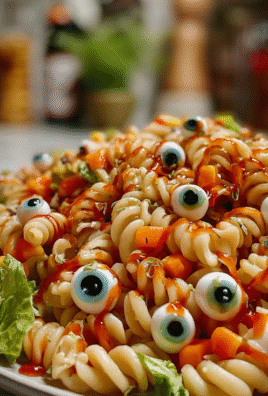Imagine creamy pasta mingling with fresh vegetables, all topped with realistic eyeball-shaped mozzarella balls and olives. The contrast of textures—from the soft pasta to the crunchy veggies—combined with the delightful flavors will tantalize your taste buds. This creepy yet delicious salad is perfect for Halloween gatherings, potlucks, or even just a fun dinner with family. Get ready to impress your guests with this frightfully fun dish that promises not only a visual thrill but also an explosion of flavors!