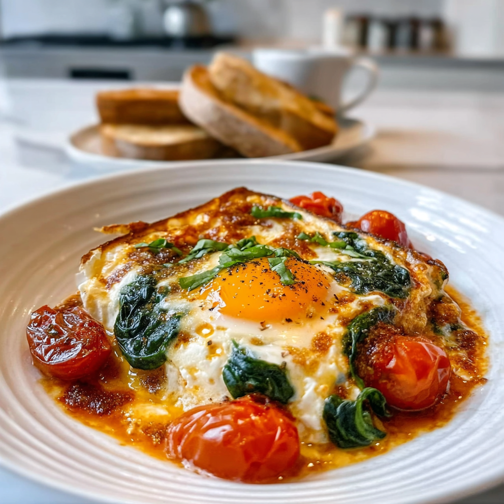 Irresistible Baked Feta Eggs with Spinach and Tomatoes