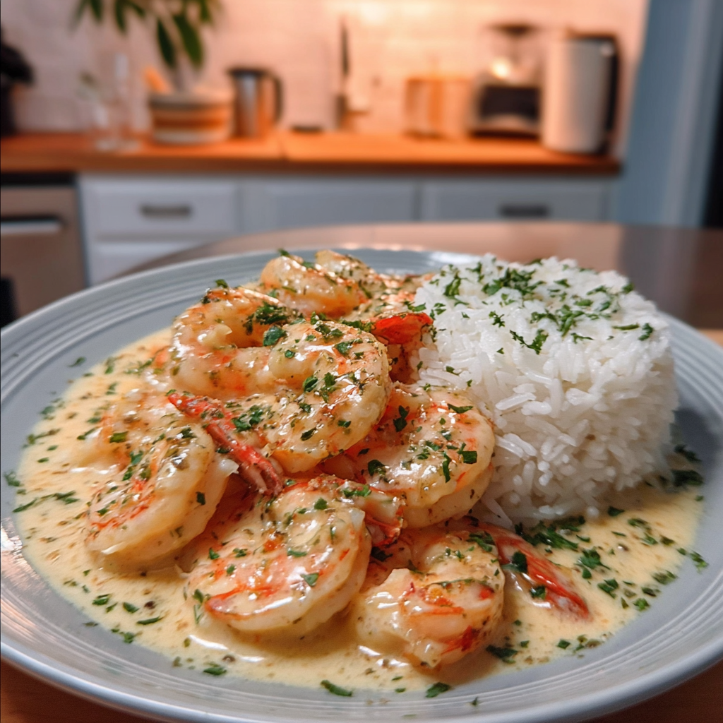 Creamy Garlic Butter Shrimp with Steamed Rice Delight