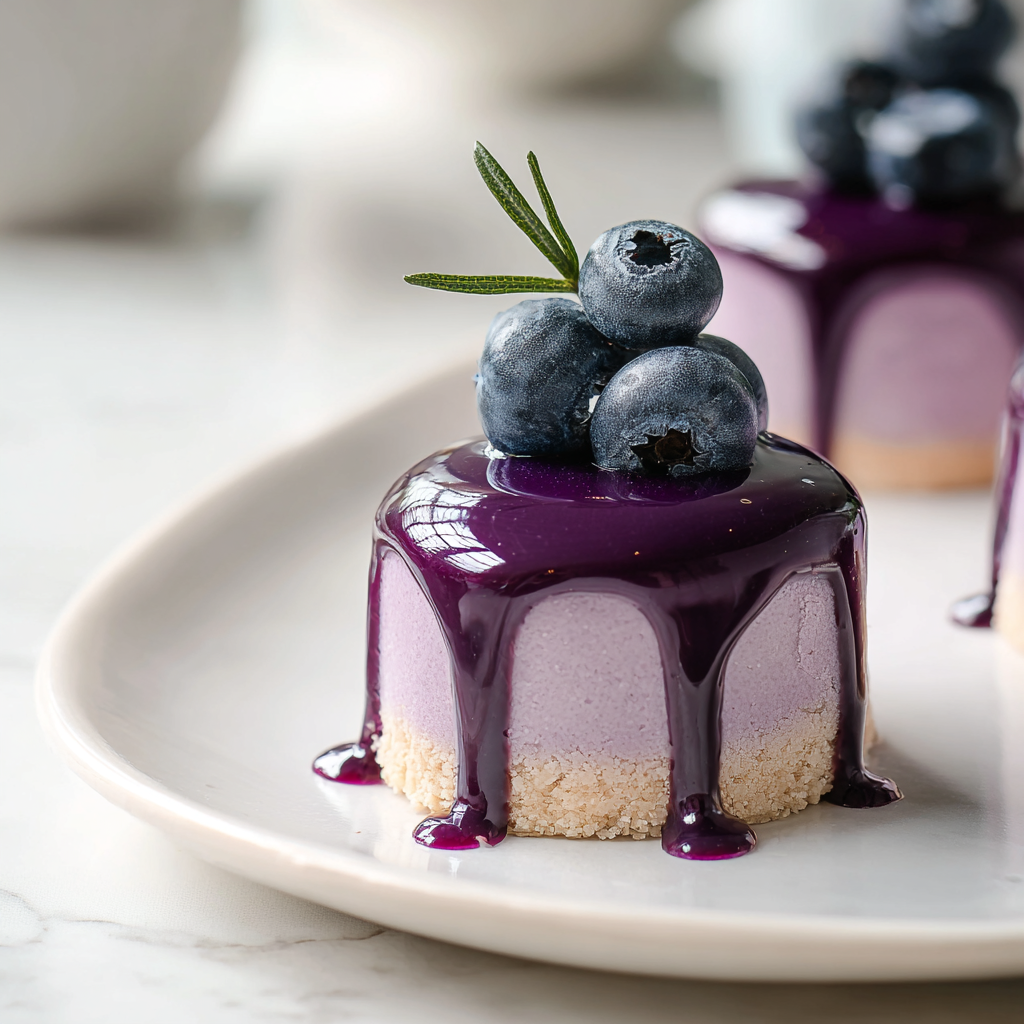 Heavenly Mini Blueberry Mousse Cakes with Mirror Glaze